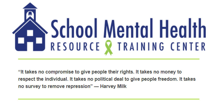 Click below for resources to help support LGBTQ+ youth from the School Mental Health Resource and Training Center website.