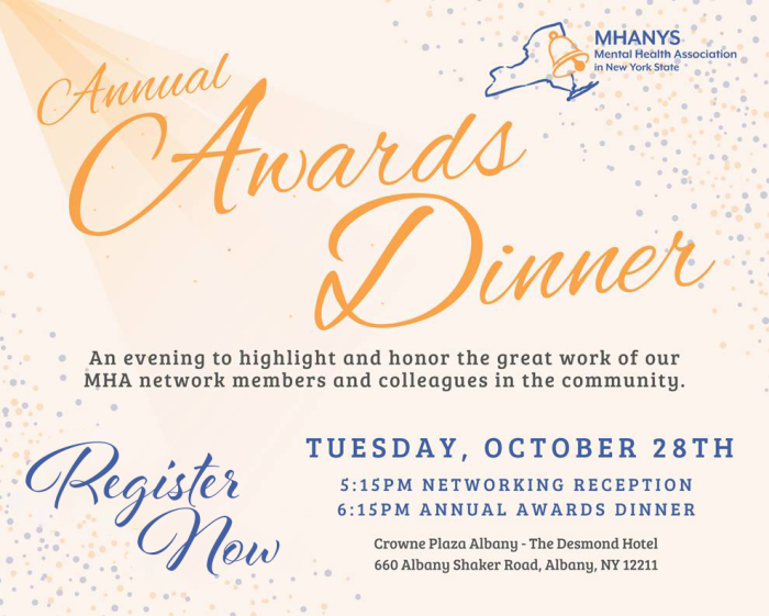 Join us at the MHANYS Annual Awards Dinner by becoming a sponsor. Your support helps us honor outstanding individuals and organizations while advancing mental health awareness across New York State. Together, we can spotlight leaders who inspire change and build stronger, healthier communities.